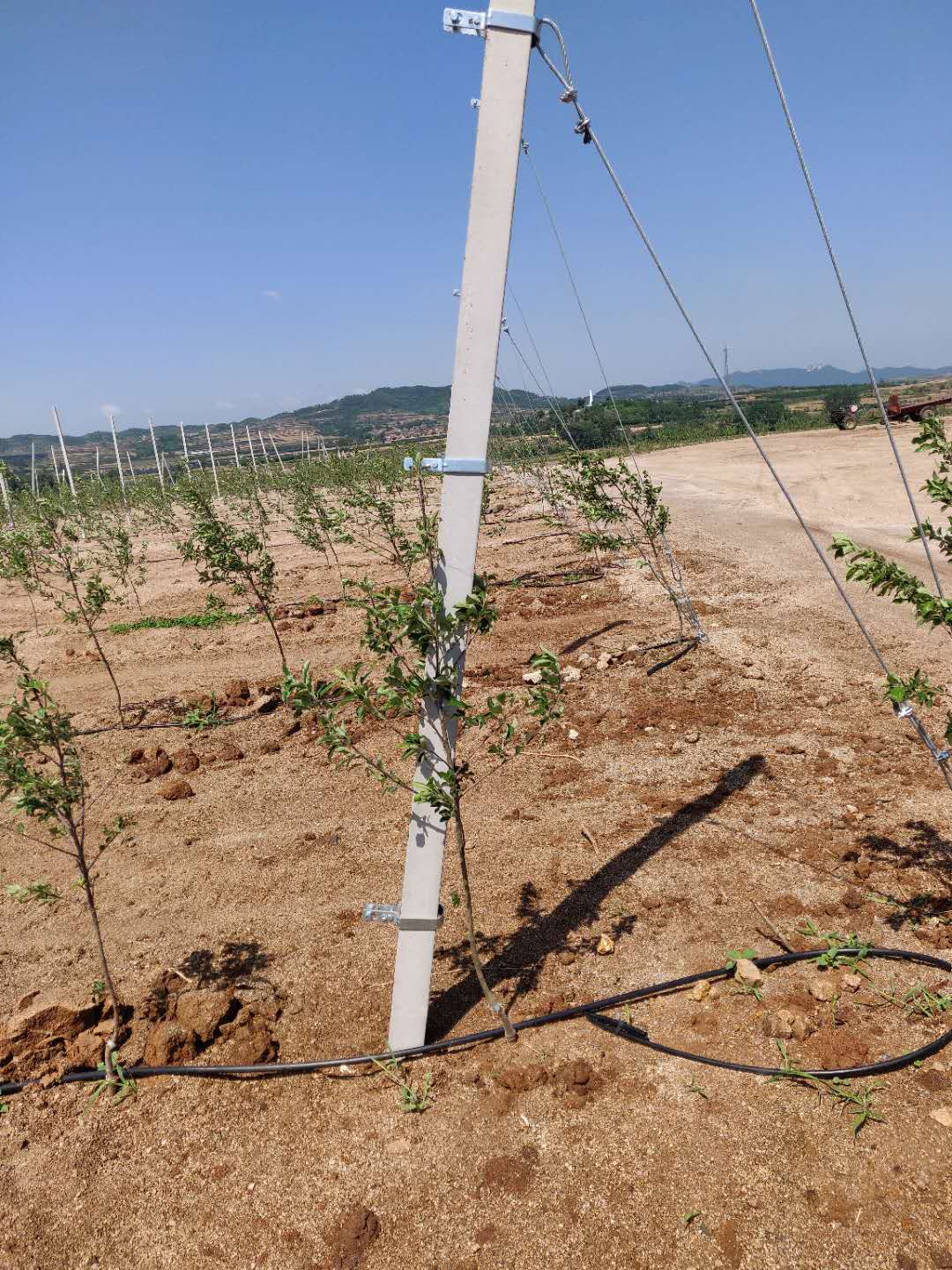 威海蔭子鎮蘋果項目是黄瓜AV在线公司今年最具影響力的項目之一,主要種植的品種是維納斯黃金和富士,是當地現代智慧農業標杆項目經常有學習人員和地方領導前來參觀指導,項目配備了先進的水肥一體化係統,氣象係統、溫濕度傳感、光輻射傳感、物聯網遠程控製,中央控製係統采用我司自主研發的黄瓜AV在线灌溉控製器。因為當地氣候條件惡劣所以對格架係統的承載力要求較高,黄瓜AV在线采用深埋和七道加固鋼絲,地錨石深度達到了1.4米,很好的保證了該項目的質量。