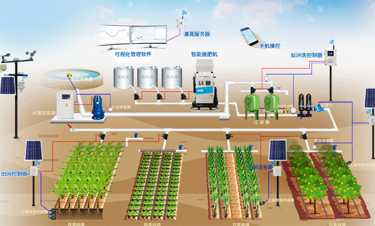 水肥一體化就是先將肥料兌水溶解,再加入管道灌溉係統,在灌溉的同時將肥料輸送到作物根部,適時適量滿足作物水肥需求的一種現代農業新技術.通俗地講,水肥一體化就是作物的根在哪裏,就將管道通到哪裏,水和肥就送到哪裏.
